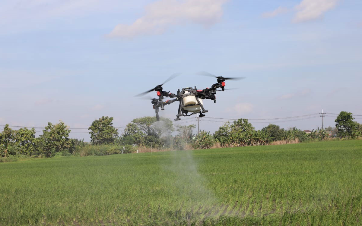 “Kalau untuk mengendalikan hama, drone ini sangat bagus. Bisa menjangkau sampai tanah bagian bawah. Kalau pakai tradisional itu lama, dan mungkin tidak bisa merata seperti drone,” ujarnya.